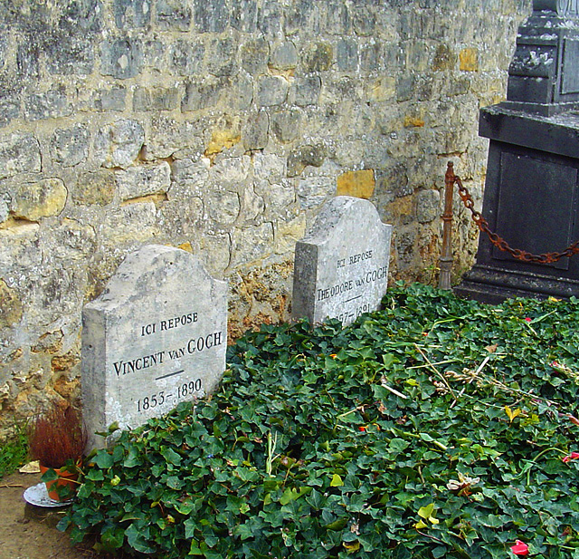 През юли 1890 г. Ван Гог гостува на брат си в Париж, но очевидно това не му въздейства добре. Отново изпада в депресия. На 27 юли 1890 г. той се прибира в квартирата си като оставя кървава диря след себе си. Хазяите му извикват д-р Гаше, който установява неумел опит за самоубийство, че в гърдите на художника е заседнал куршум и той не може да бъде изваден. Винсент лежи, повикан е брат му от Париж. Гениалният художник дочаква срещата си с него, но отказва медицинска намеса. Издъхва на 29 юли 1890 г. Погребан е в Овер, изпратен от шепа хора – малкото си приятели като пощальона Рулен или художника Синяк... Ковчегът е бил покрит със слънчогледи.