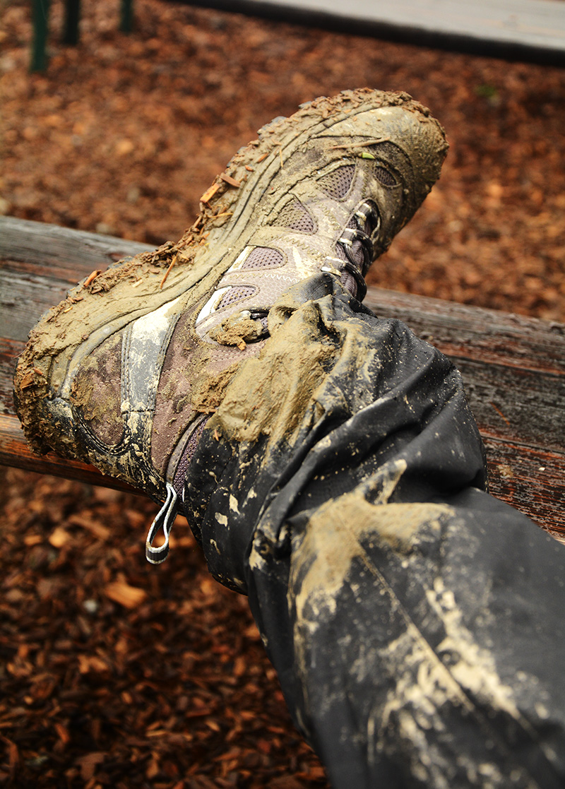 Обувките - символ на вървенето и алпийския начин на живот, стоящи по масите на мандрата Le Peule. Те са чисти за разлика от тези на Красито (снимката горе), които показват добре състоянието на пътеката в момента на нашето слизане от Grand Col Ferret.