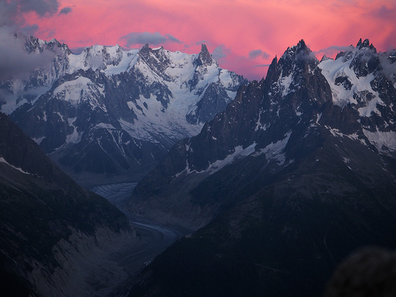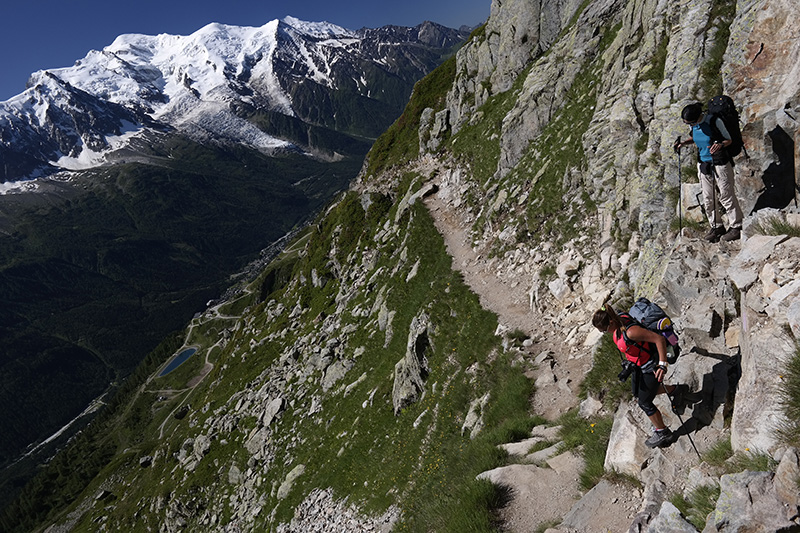 Южният балкон с прекрасни гледки към Монблан ни възнаграждава със слънчево време и успяваме да направим множество снимки в този нов за нас трек! Благодаря на Бог за предоставената възможност, която осмисля цялото ни повторно пътуване. Щастливи слизаме от Южния балкон към Chamonix.